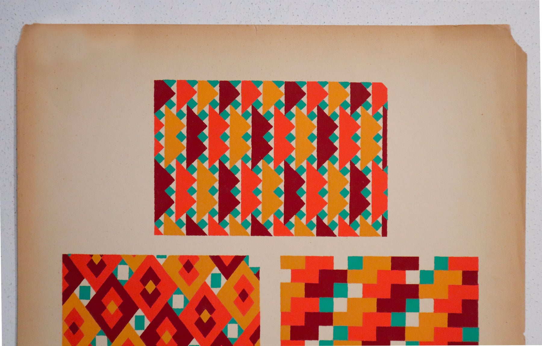 This pochoir (a French variation of a hand-coloured stencil) would have been used by designers to show clients and collectors patterns for wall-paper, fabric or tapestries. Its excellent colour and fabulous detail make it a unique vintage piece, perfect for any design lover.