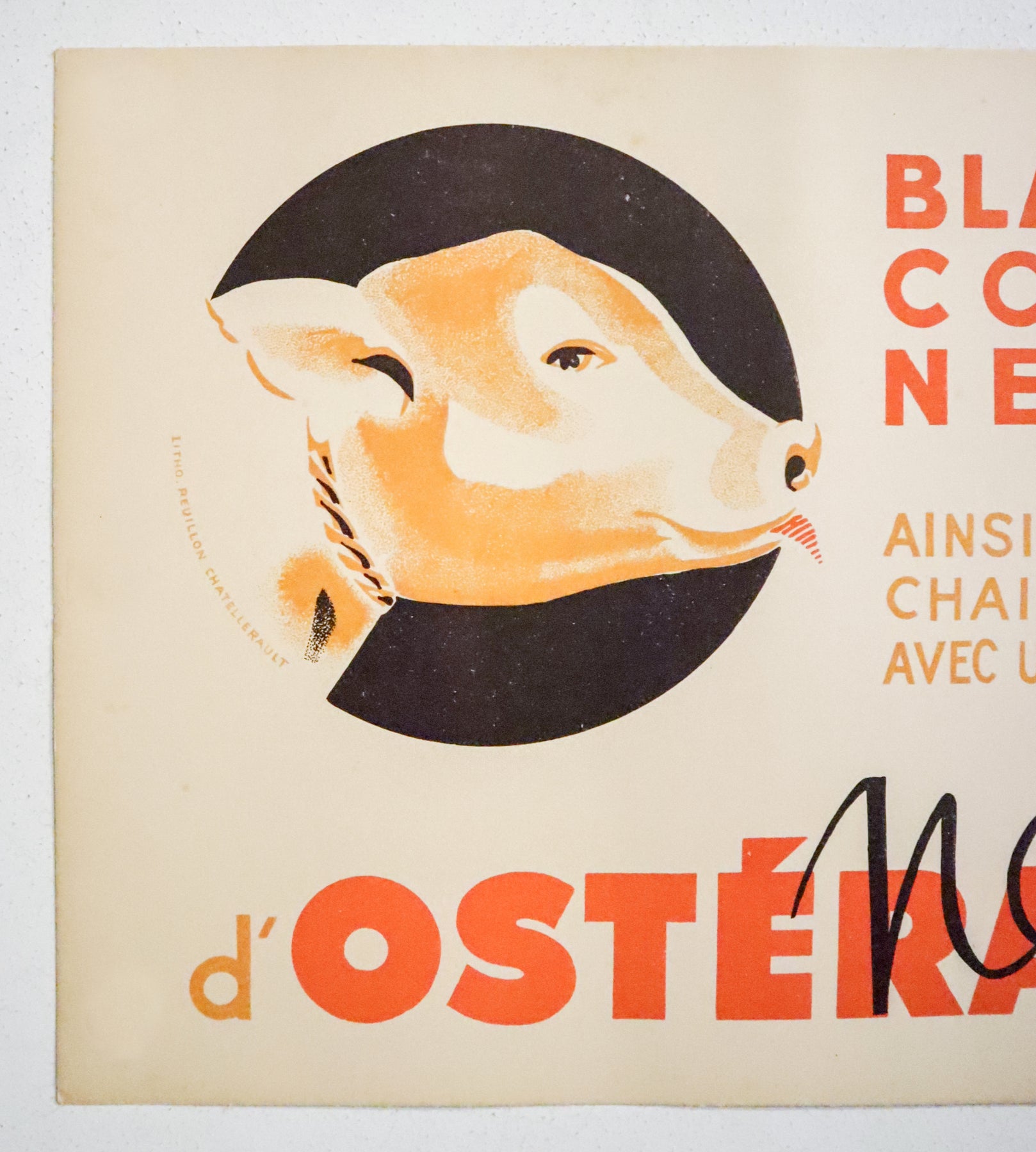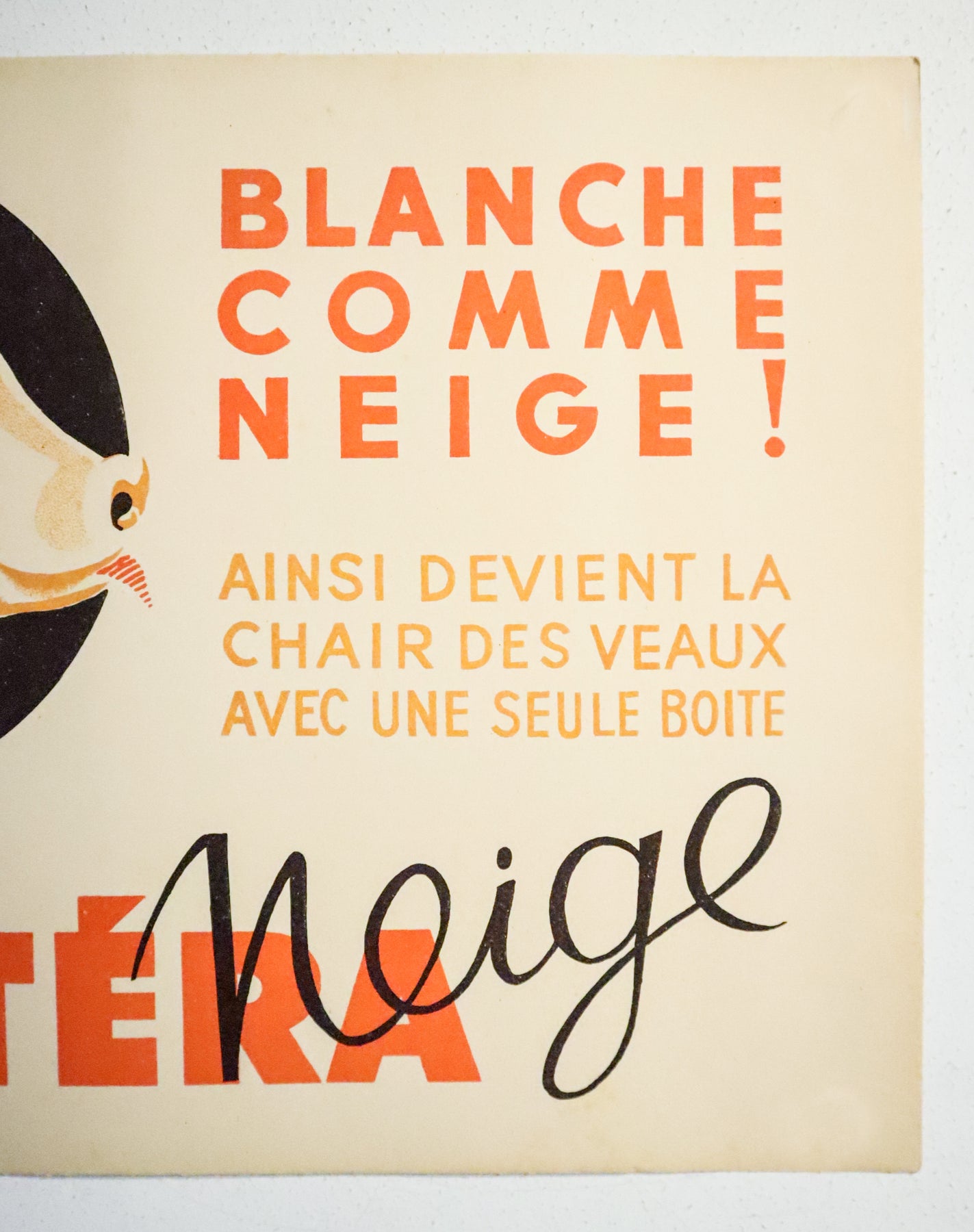 About the poster: This vintage Buvard paper advertised Neige d'Ostéra, a salt lick designed to provide essential minerals like sodium, potassium, and magnesium. These minerals support hydration, muscle function, and electrolyte balance. In animal husbandry, salt licks are especially important for calves, helping prevent deficiencies that can stunt growth or weaken immunity. For calves, they promote healthy bone development, digestion, and overall growth—nutritional support that grain or forage alone may not fully provide.