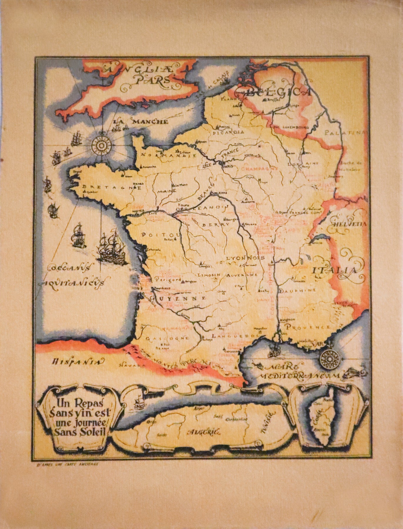 1954 French Wine Map, Un Repas Sans Vin est une Journée sans Soleil
