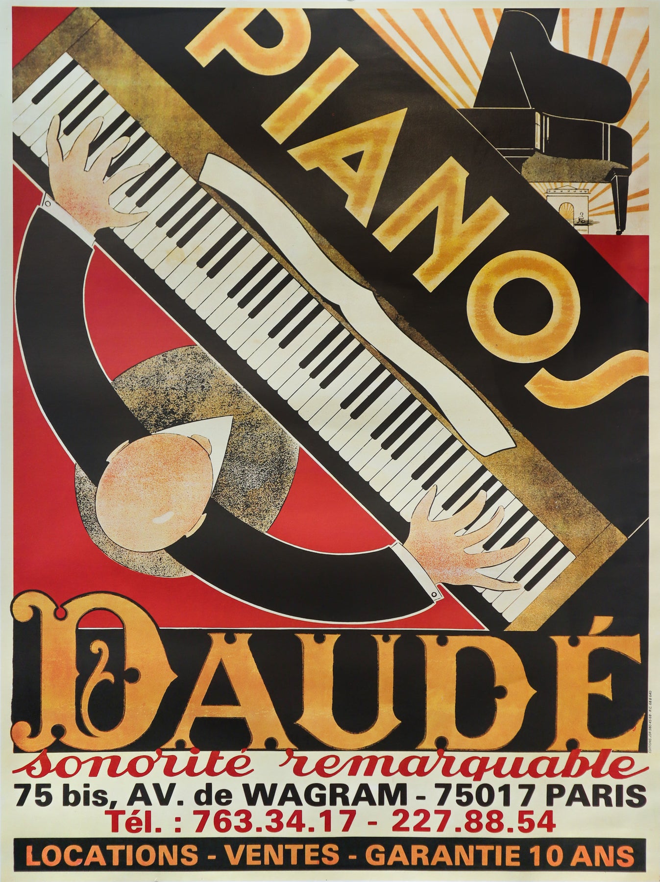 1980s Original French Art Deco Piano Poster - Pianos Daudé (Restrike)