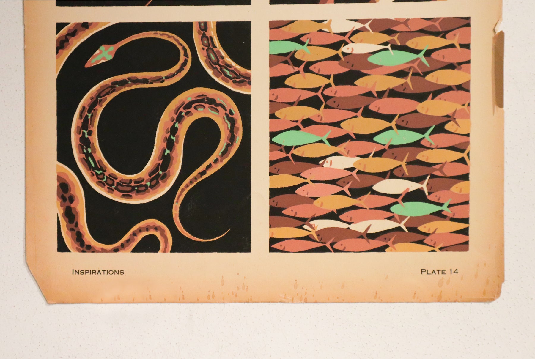 This pochoir (a French variation of a hand-coloured stencil) would have been used by designers to show clients and collectors patterns for wall-paper, fabric or tapestries. Its excellent colour and fabulous detail make it a unique vintage piece, perfect for any design lover.