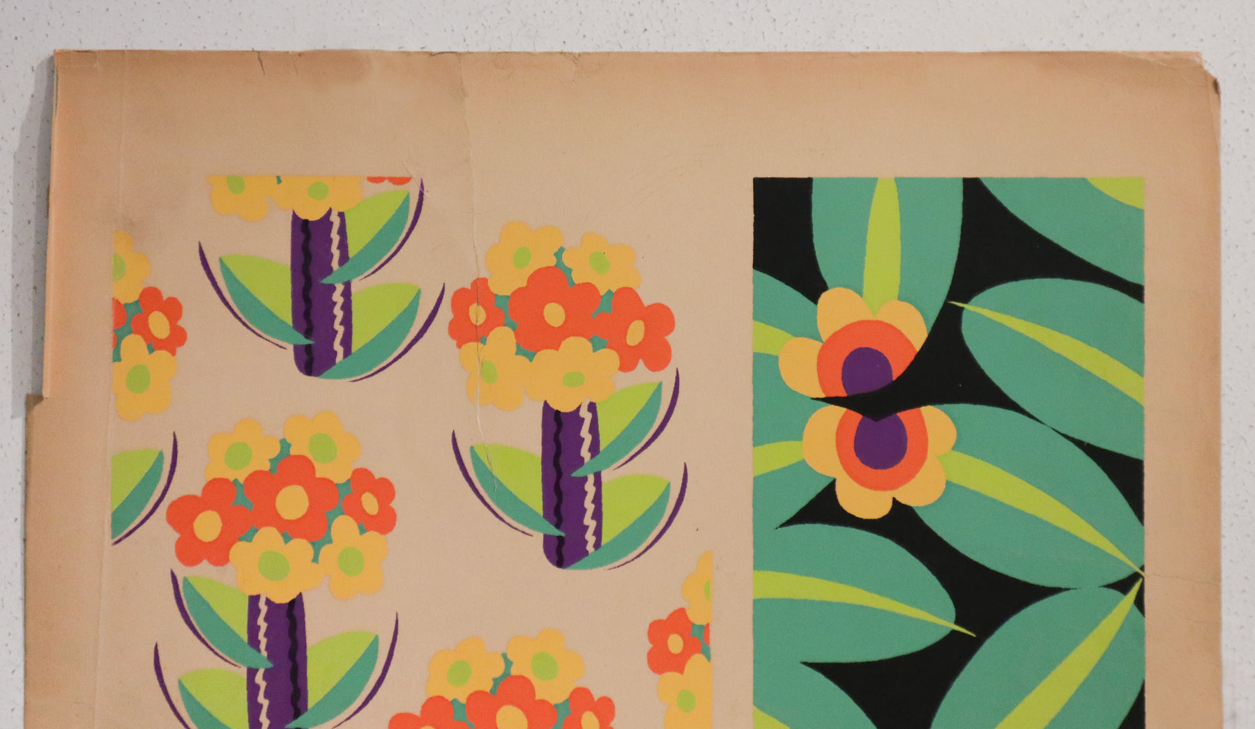 This pochoir (a French variation of a hand-coloured stencil) would have been used by designers to show clients and collectors patterns for wall-paper, fabric or tapestries. Its excellent colour and fabulous detail make it a unique vintage piece, perfect for any design lover.