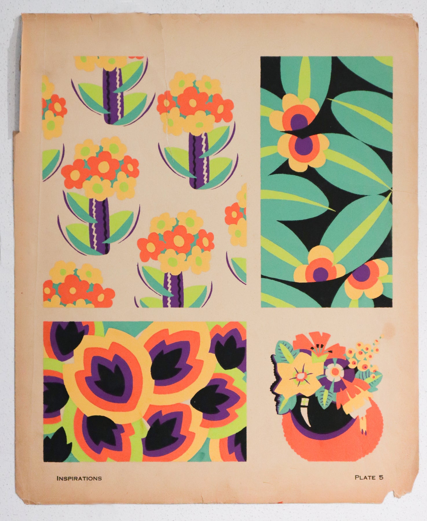 1928 American Botanical Design Pochoir, Inspirations (Book B, Plate 5), André Durenceau