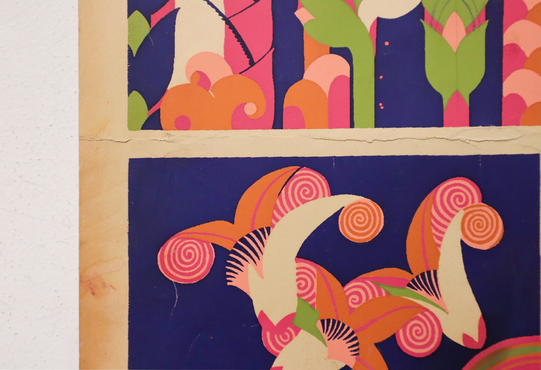 This pochoir (a French variation of a hand-coloured stencil) would have been used by designers to show clients and collectors patterns for wall-paper, fabric or tapestries. Its excellent colour and fabulous detail make it a unique vintage piece, perfect for any design lover.