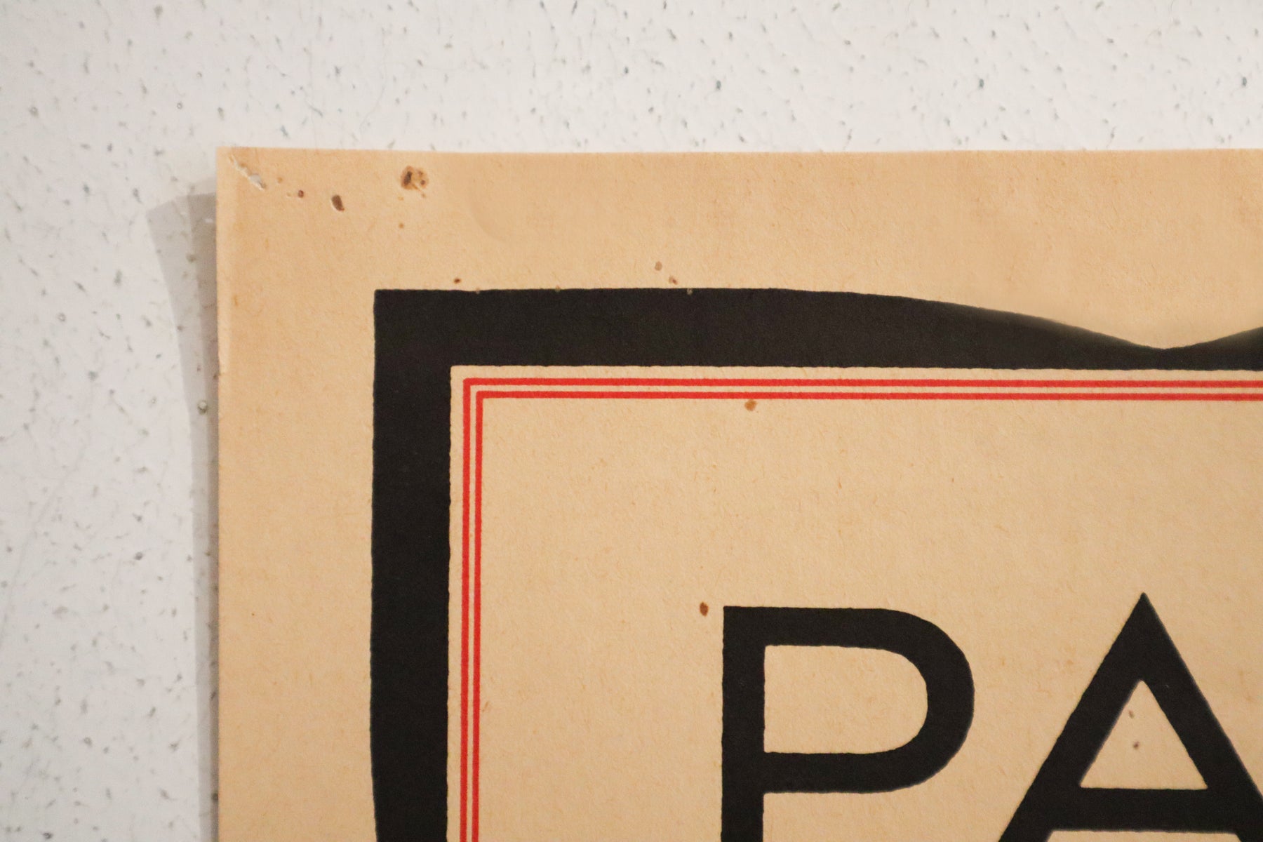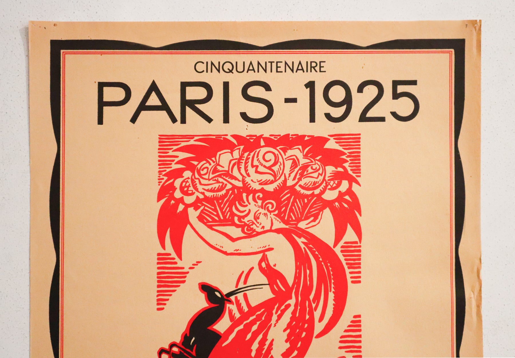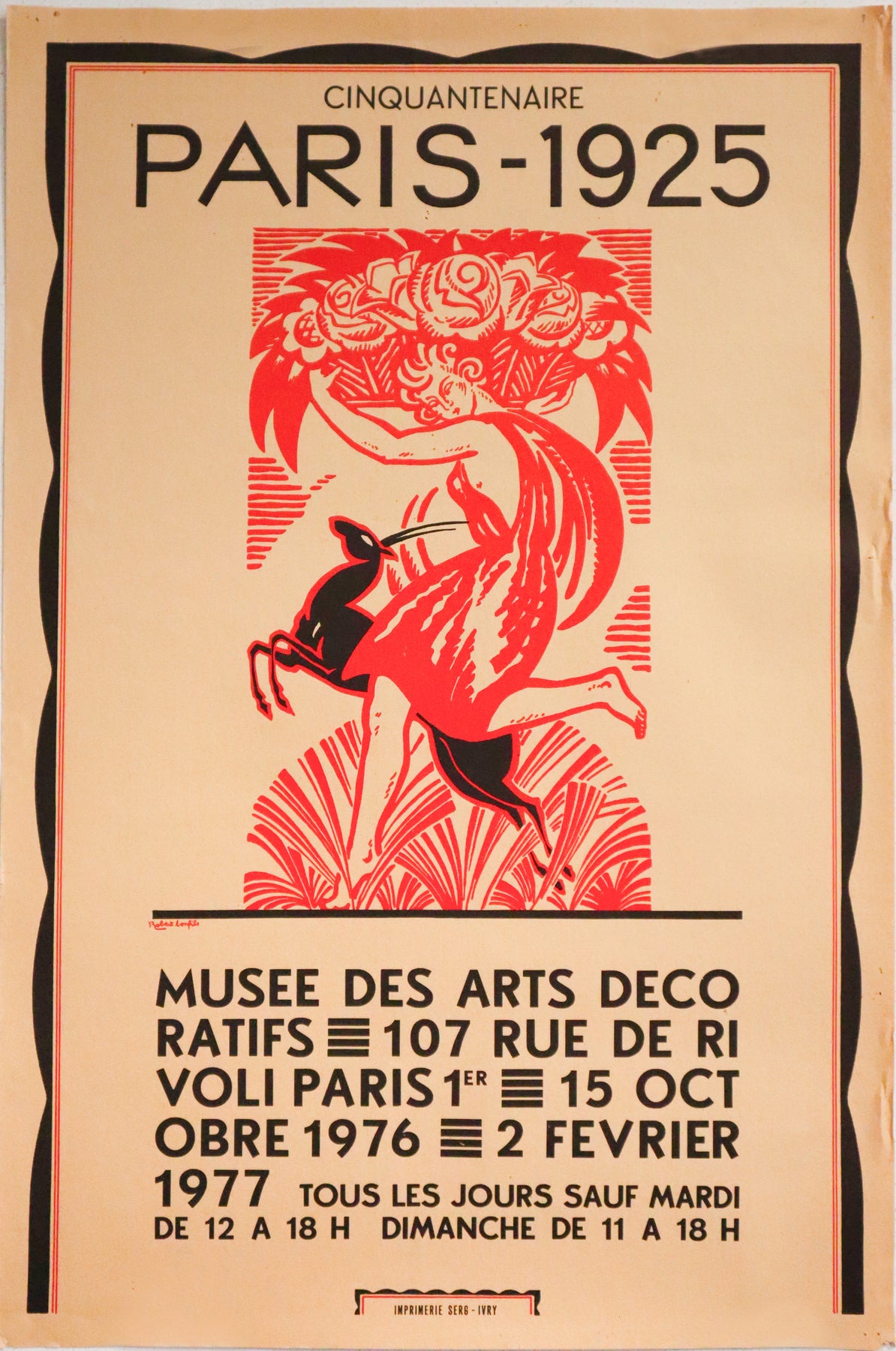 This poster celebrates the 50th anniversary of the 1925 Paris World Expo. The event was held at the Musée des Arts Décoratifs between 1976 and 1977. The poster is an almost exact replica of Robert Bonfils's 1925 poster which has become synonymous with the World Fair. Simple and elegant, this poster is in excellent condition.