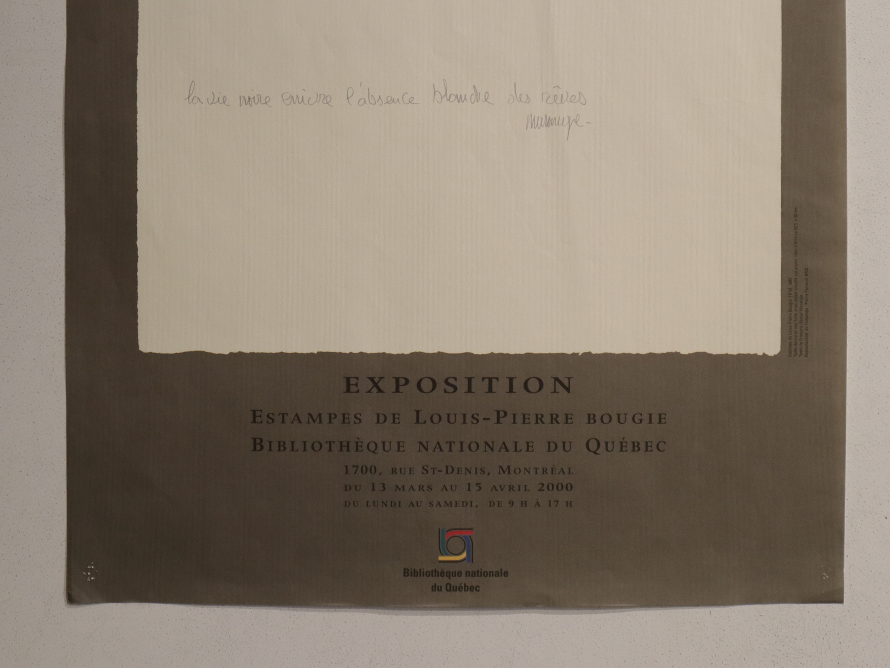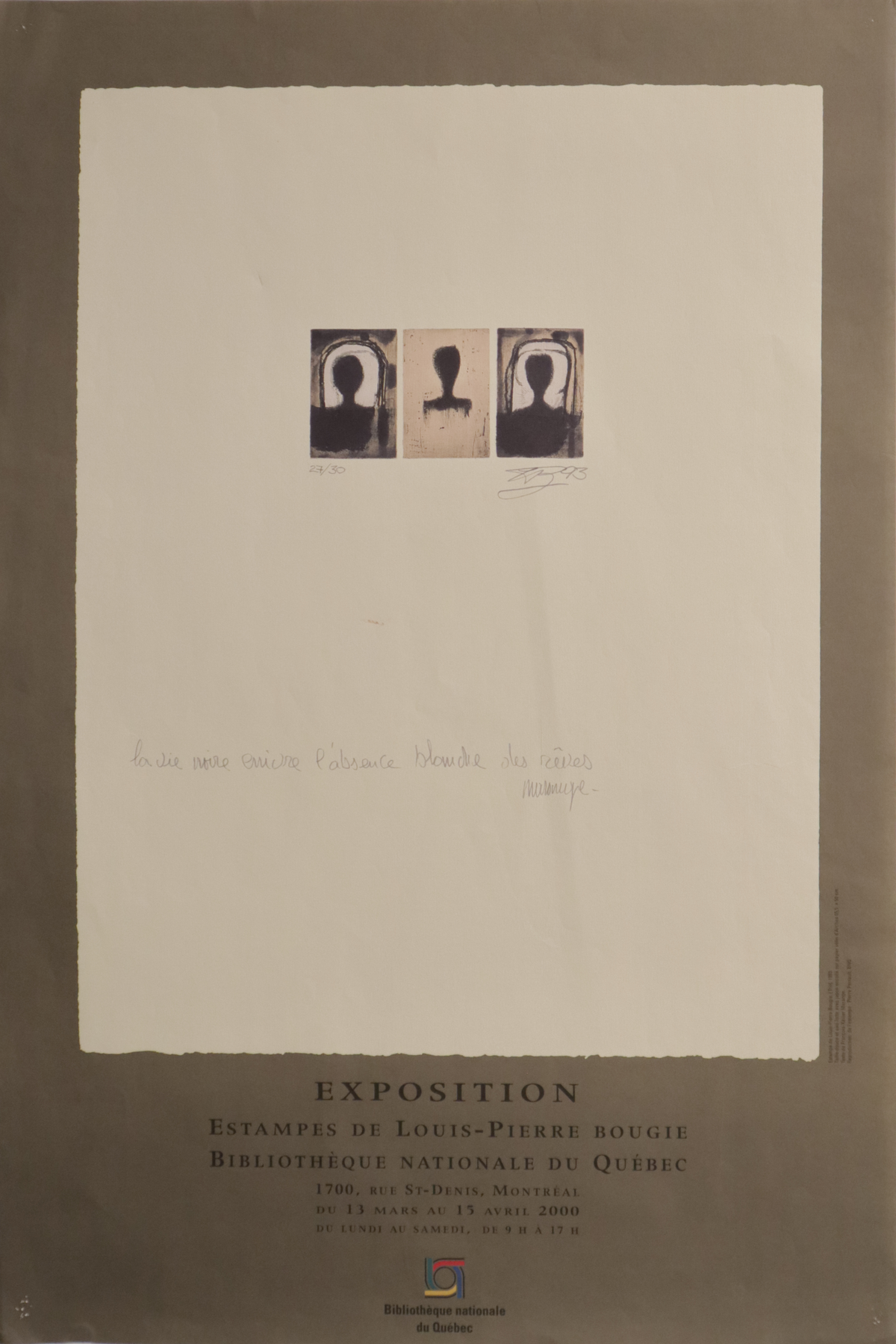 2000 Vintage Quebec Exhibition Poster, Estampes de Louis-Pierre Bougie at the Bibliothèque Nationale du Québec
