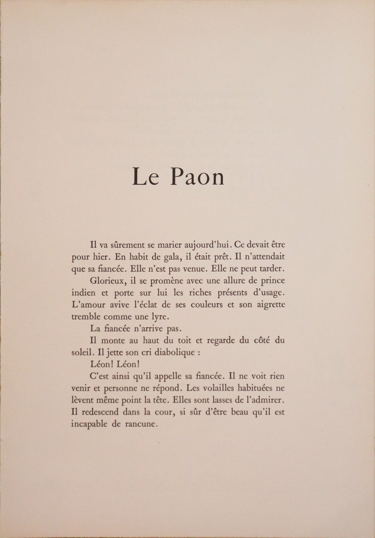 1949 French Book Illustration, Histoires Naturelles, Le Paon - Toulouse-Lautrec & Jules Renard