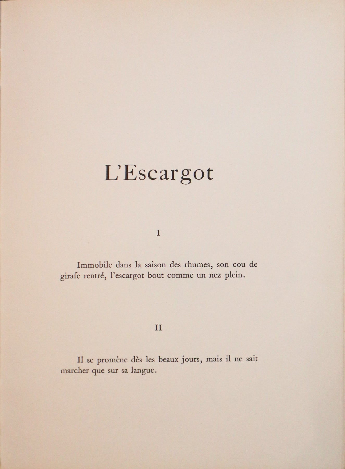 1949 French Book Illustration, Histoires Naturelles, L'Escargot - Toulouse-Lautrec & Jules Renard