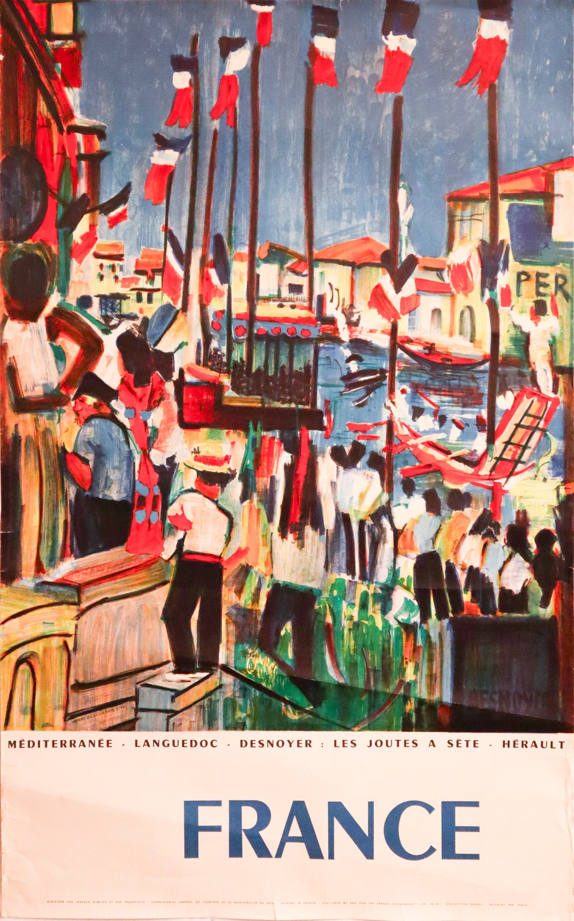 1959 French Travel Poster, France, Desnoyer: Les Joutes a Sète, Desnoyer