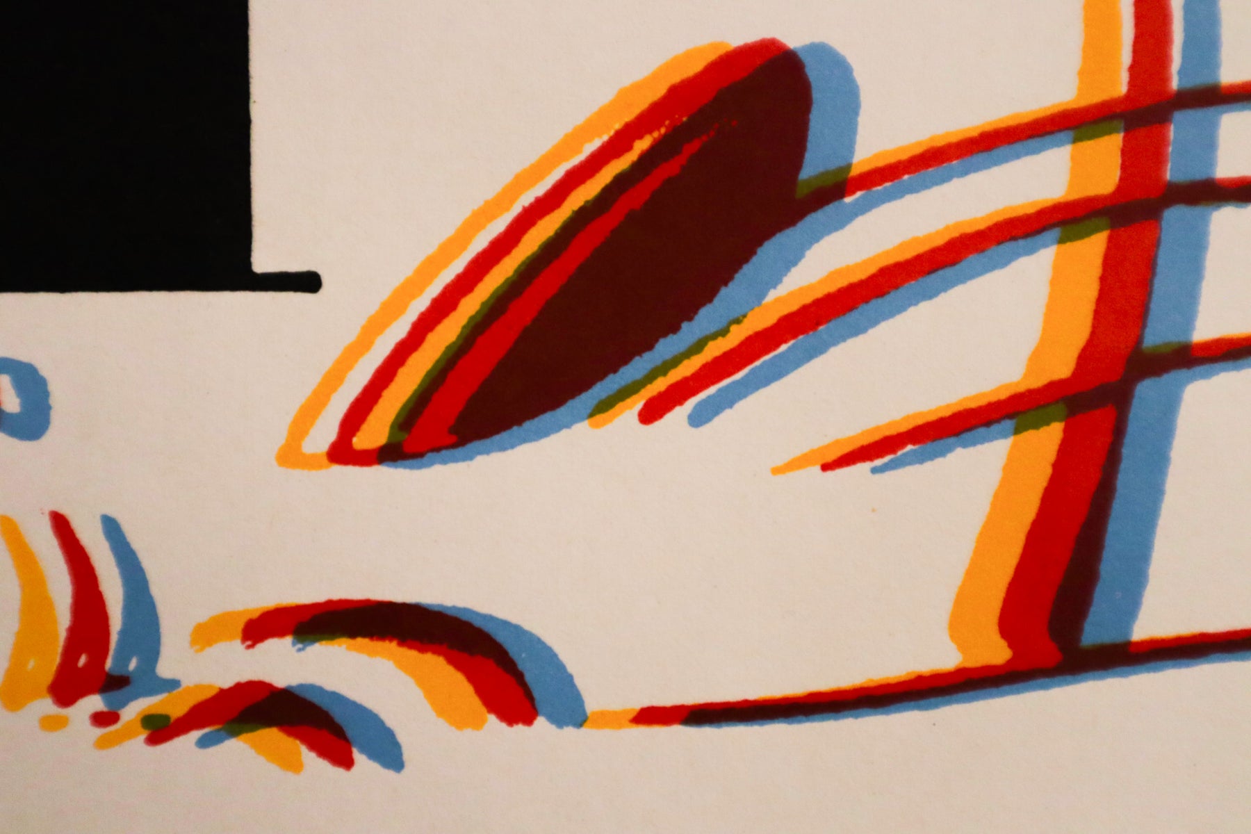 Be sure to look at the close up images to see the colour combination which creates the effect of the work to appear in motion. This poster is in good condition and ready to frame !