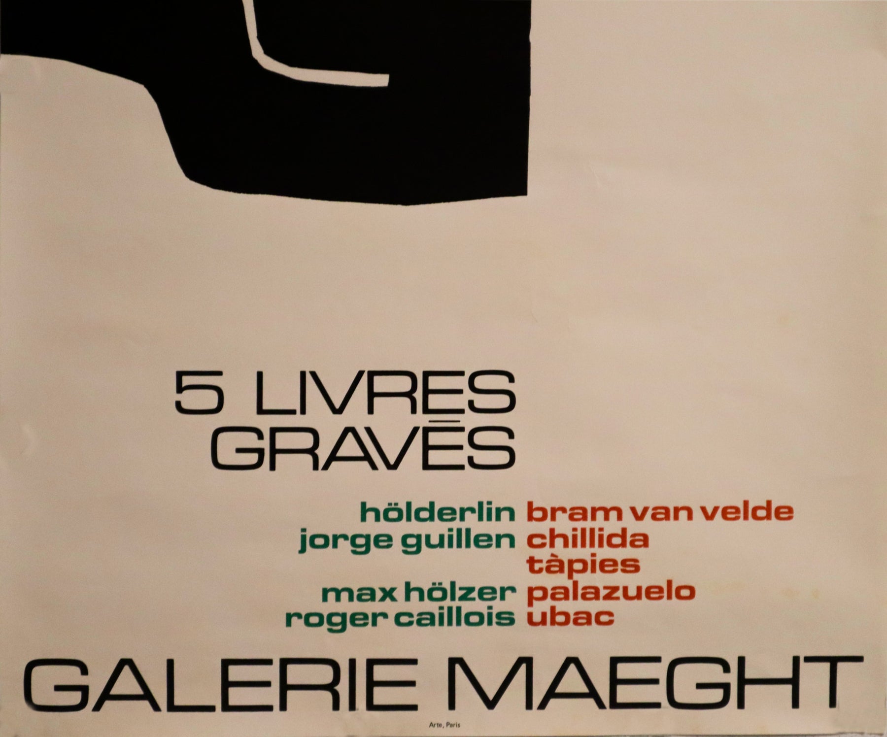 About this Poster: This is a poster for a group exhibition a Galerie Maeght, including several artists. It features the work of Spanish sculptor Eduardo Chillida on the poster.