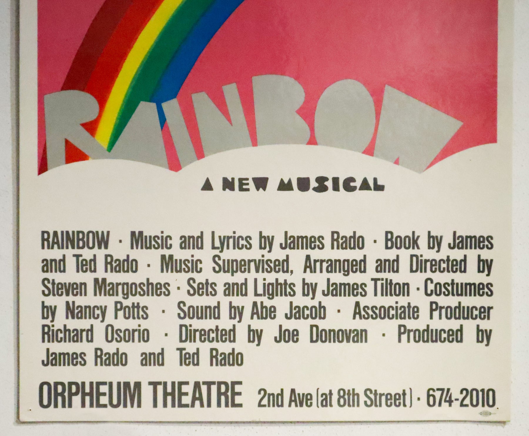 About:  The musical Rainbow, which opened in 1972 at the Off-Broadway Theatre was called "The Musical Successor to Hair" by The New York Times. Part of the review from the Times reads, "