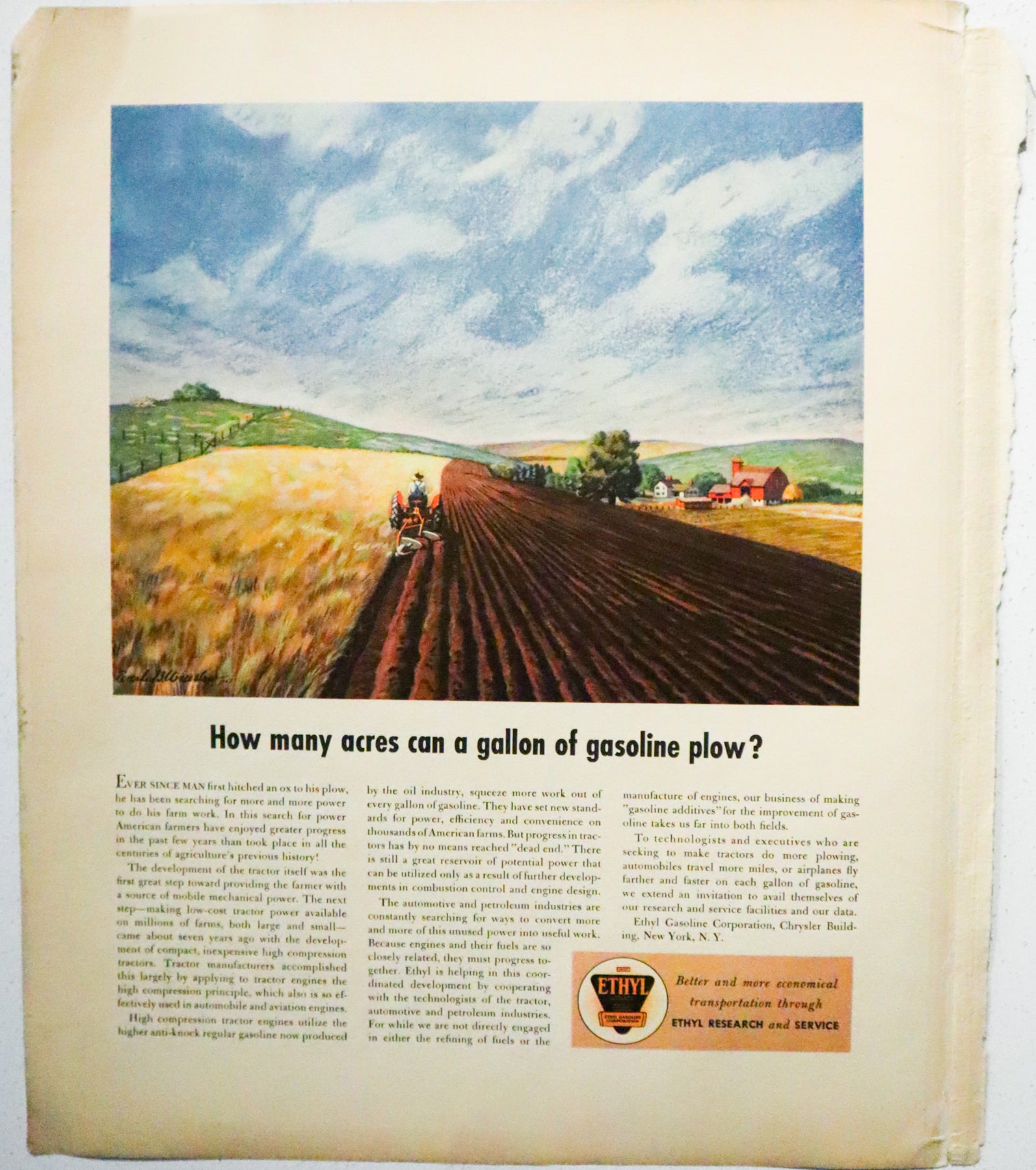 1941 Original Fortune Magazine Cover - "How many acres can a gallon of gasoline plow?"
