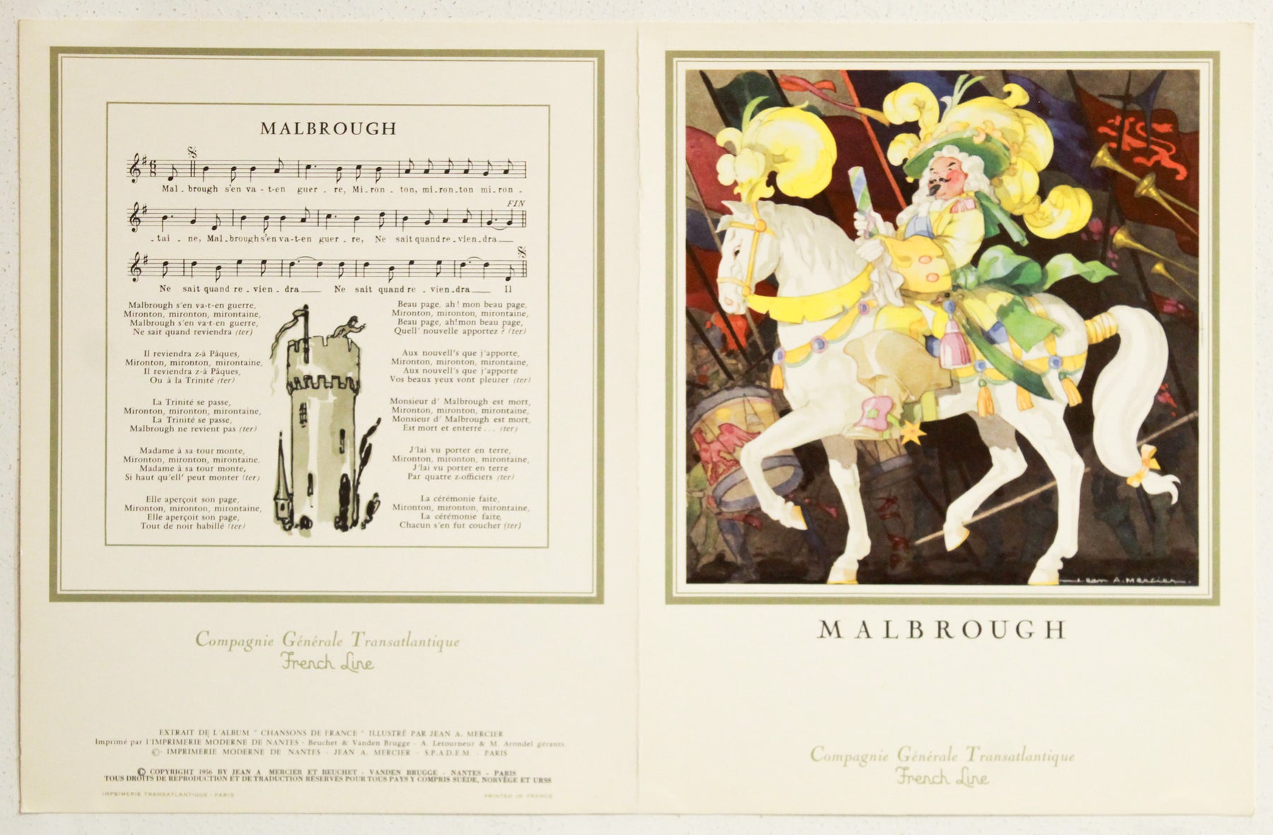 1956 French Music Sheet, " Malbrough ", Extrait de l'album "Chansons de France" - Jean A. Mercier