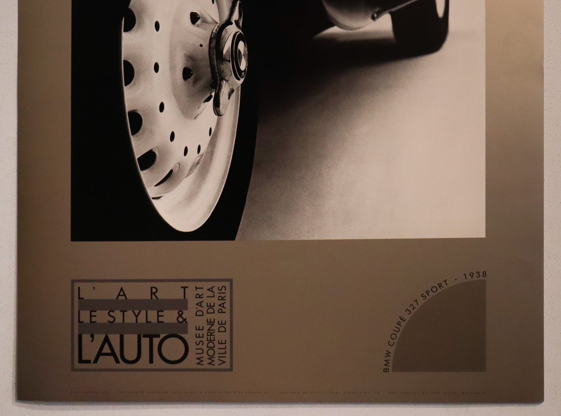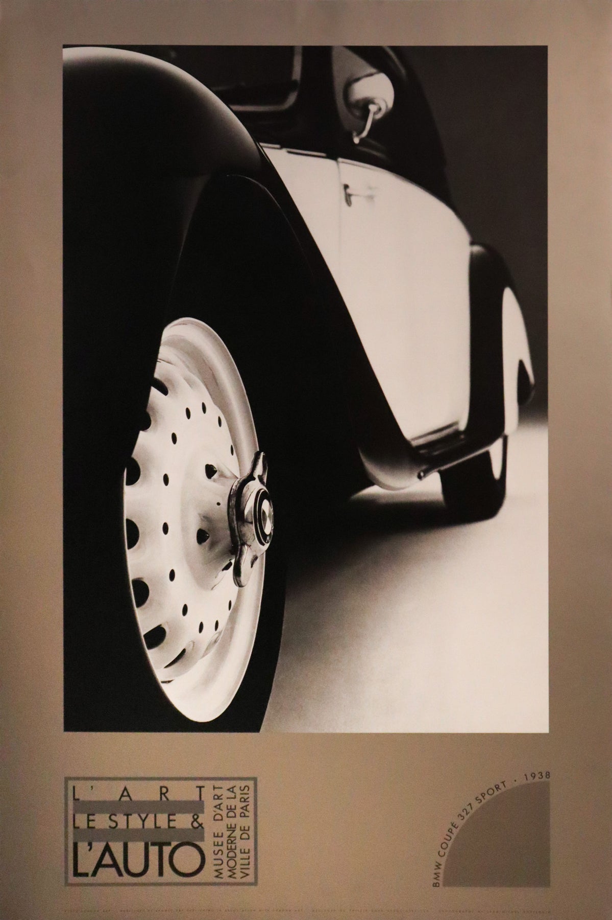 About the poster: This poster is an advertisement for an art exhibition titled "Le Style et L'Auto" (Style and the Automobile) at the Musée d'Art Moderne de la Ville de Paris. This exhibition highlighted the intersection of art, style and automotive design, and this advertisement features a photograph of the BMW 327 Sport Coupe.