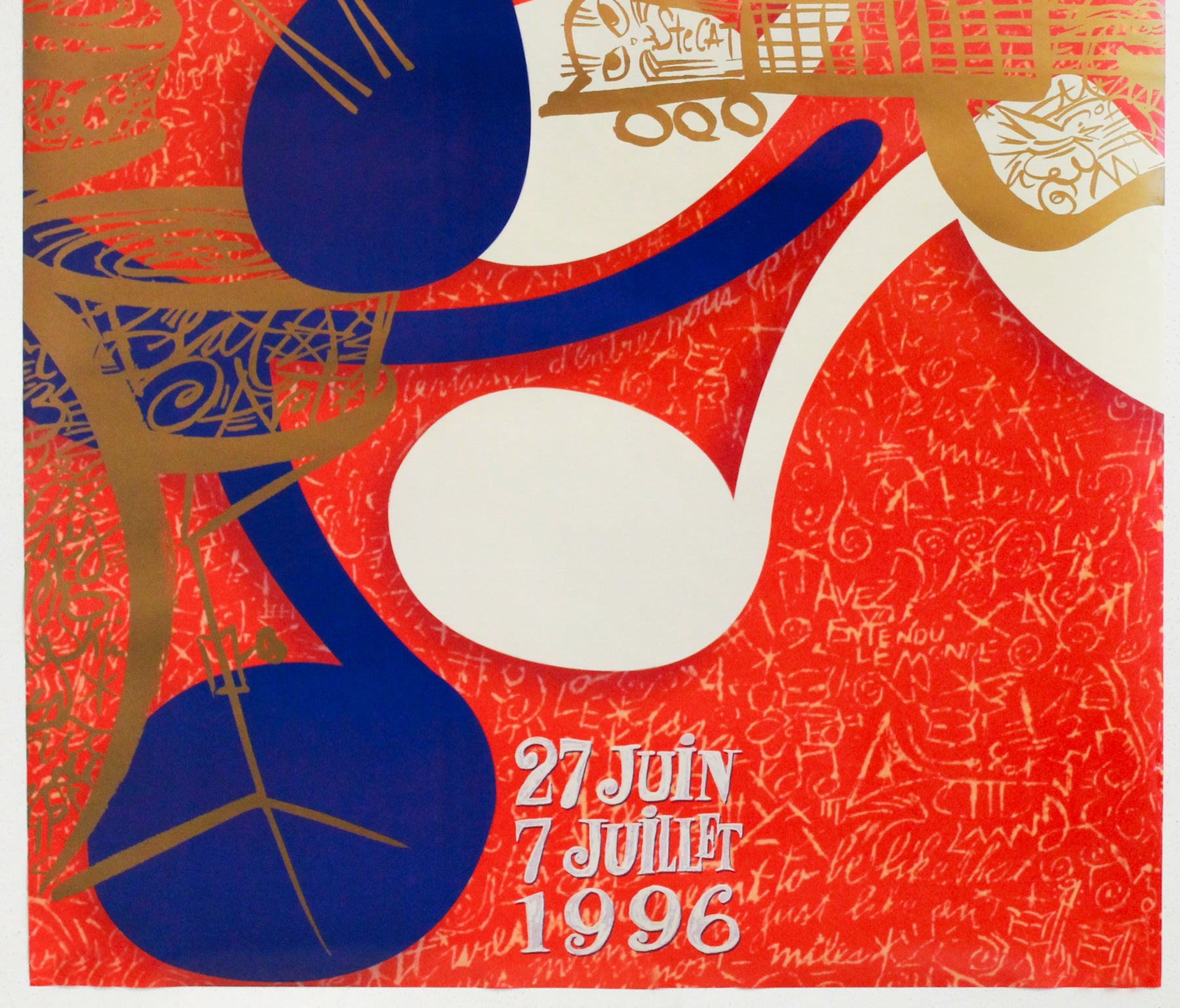 This original vintage poster was created by Yves Archambault for the 1996 edition of the Montreal International Jazz Festival. Established in 1980, holds the 2004 Guinness World Record as the world's largest jazz festival. For 25 years, the official posters have been imagined and painted by Yves Archambault. After studying fine arts and graphic design, Archambault began working for the Jazz Festival in 1988. He has worked with them ever since.