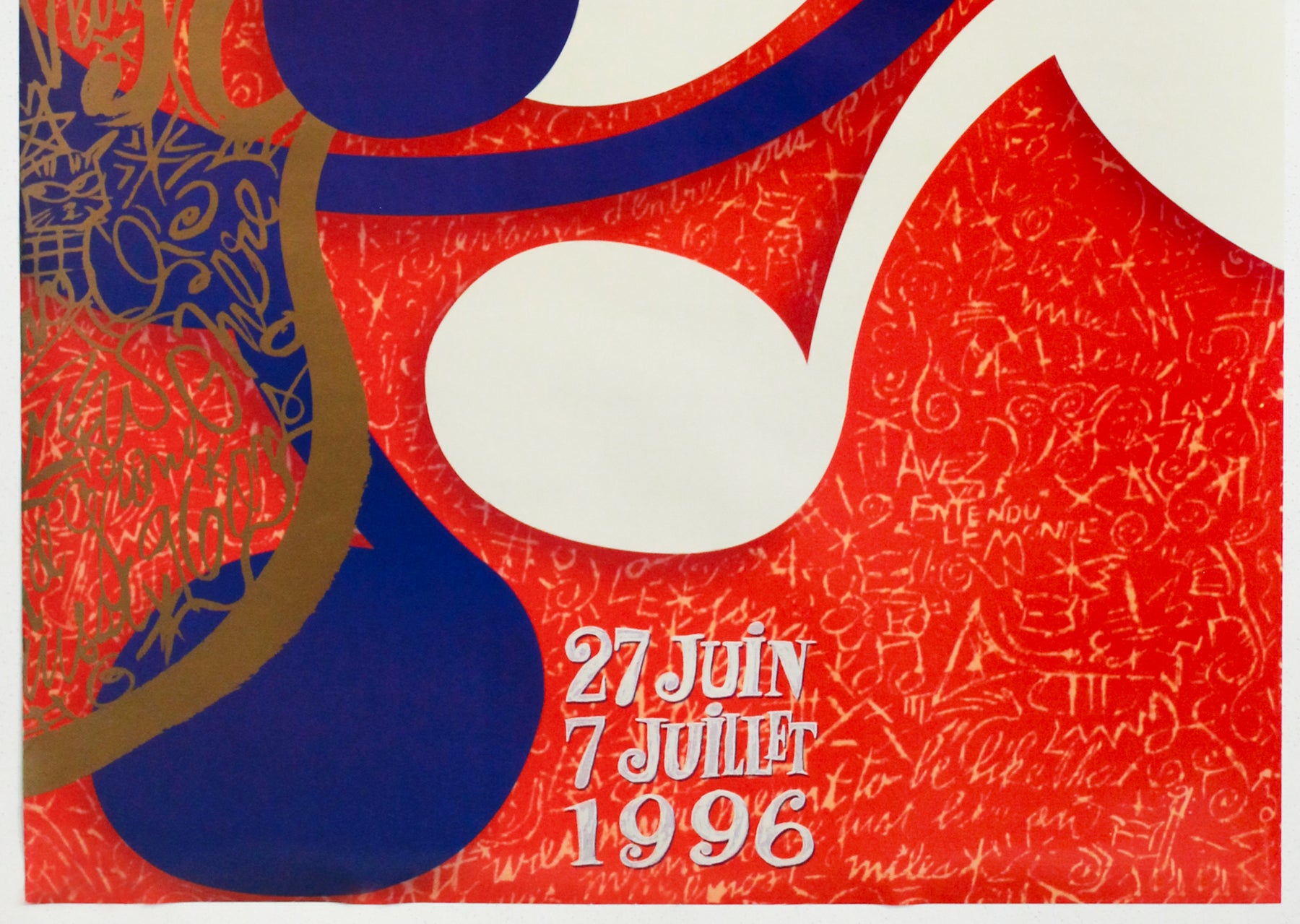 This original vintage poster was created by Yves Archambault for the 1996 edition of the Montreal International Jazz Festival. Established in 1980, holds the 2004 Guinness World Record as the world's largest jazz festival. For 25 years, the official posters have been imagined and painted by Yves Archambault. After studying fine arts and graphic design, Archambault began working for the Jazz Festival in 1988. He has worked with them ever since.